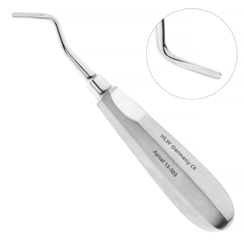 Элеватор Apical 13-303 от немецкого производителя HLW изготовлен из высококачественной стали, имеет диаметр рабочей части 3,0 мм и оптимально изогнутую форму для точного доступа к апикальной области. Он отличается повышенной прочностью и правильной балансировкой для идеального контроля движений.