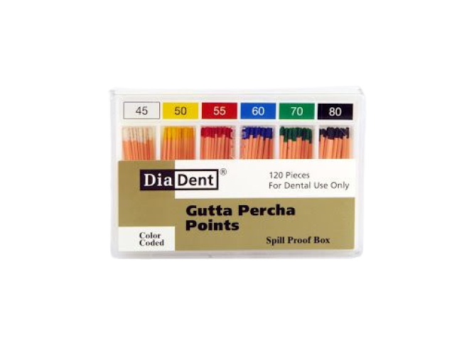 Гуттаперчевые штифты № 50 DiaDent применяются при лечении периодонтитов и пульпитов всех типов. С их помощью качественно герметизируется обработанный зубной канал перед дальнейшей реставрацией.